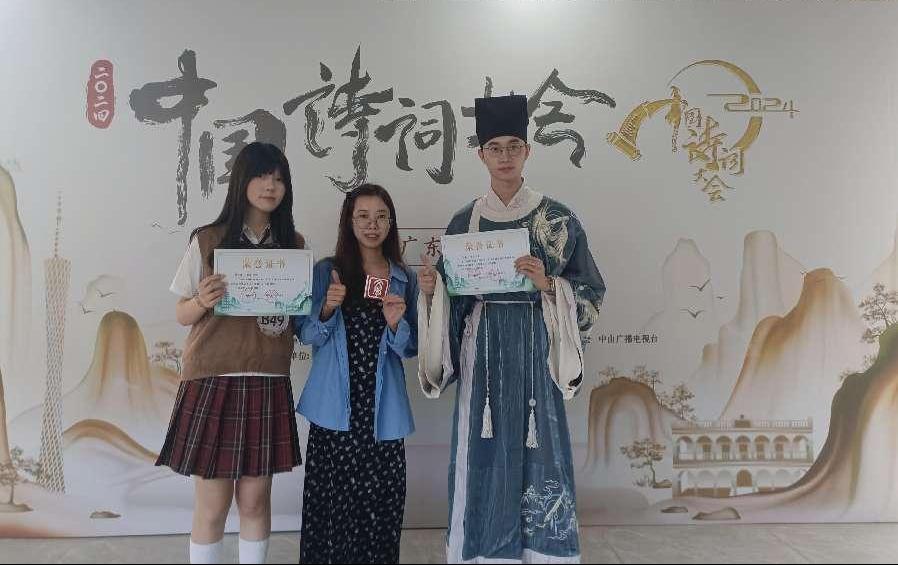 汉语言文学专业学生郑镇鑫(右)、林妙璇(左)晋级“中国诗词大会”央视百人团选拔赛