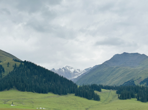 被誉为“最先见到太阳的地方”,那拉提草原是世界四大河谷草原之一。它深藏于天山腹地的伊犁河谷,三面环山,平均海拔1800米。八月盛夏,绿草如茵铺展至天际,巩乃斯河蜿蜒如带,平展的河谷、起伏的丘陵与茂密的云杉林、散落的哈萨克族毡房共同构成壮阔画卷。这片土地自古便是游牧文明与中原文化交融的纽带,草原深处的乌孙古墓群与河谷旁的古城遗址,无声诉说着跨越千年的丝路传奇。