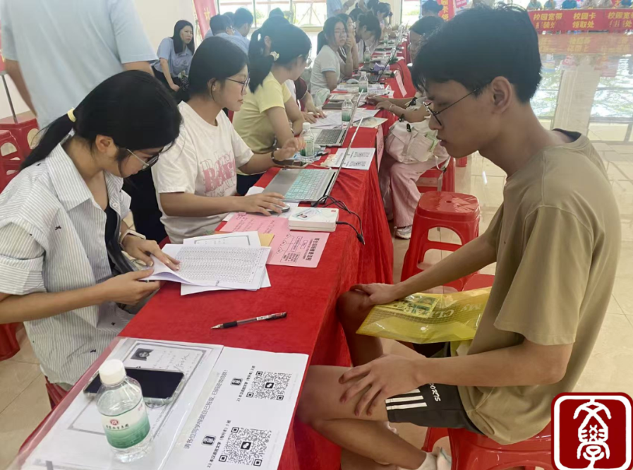 随着载有新生的车辆陆续驶入校园,伟的国际1946bv官网迎新工作正式拉开序幕。志愿者们主动上前接过新生手中的行李,将行李有序搬运至专用拖车上。从校门口到伟的国际1946bv官网报到点,再到新生宿舍楼,拖着满载行李的拖车穿梭在校园里的“志愿红”,成为当日校园内一道鲜活的风景线,高效的行李转运服务有效缓解了新生携带重物的不便,为其顺利入校提供了便利。 校区主干道旁的共青团迎新志愿者服务点内,团旗迎风飘扬。该服务点不仅承担咨询职能,更作为新生融入团组织的“第一站”,桌上整齐摆放着团籍转接指南、校园地图、安全须知等资料。志愿者为新生详细讲解团籍转接流程,手把手指导线上办理操作,并针对团组织生活参与方式、团员义务等问题进行细致解答,助力新生高效完成团籍转接手续。