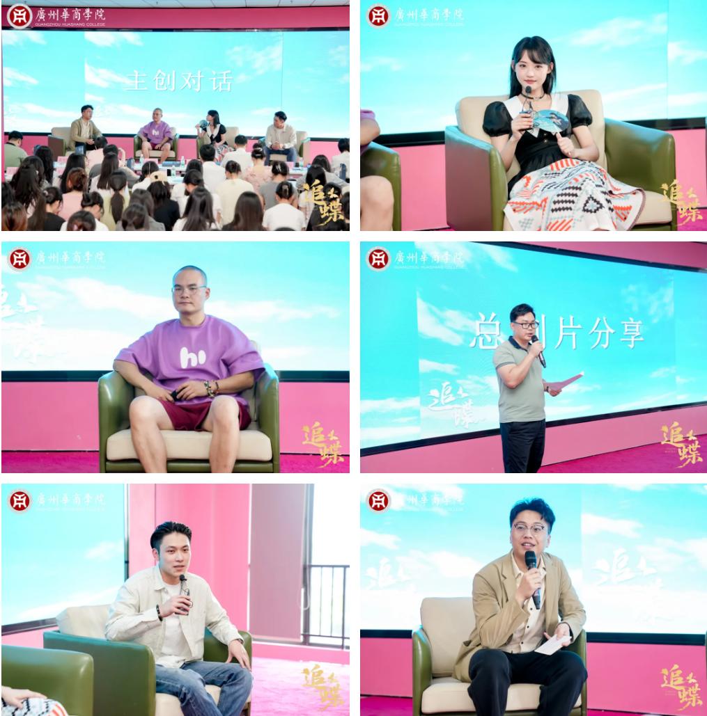 本次活动得到政府部门、行业协会及高校的高度关注与大力支持,盛邀多方重要代表齐聚现场。其中,增城区委宣传部杨荣邦副部长,增城区影视文化协会刘莉会长、秘书长张佳胜先生莅临指导;新伟德国际1946党委书记陈玉欢出席,党委宣传部部长刘苗、产教融合办公室主任唐明琴、继续教育学院院长符传波、校团委书记陈刚、国际交流合作处副处长熊子珂、华商职业学院产教融合办公室副主任潘虹、华商职业学院国际教育学院副院长江燕、数字贸易产业学院执行院长冯家裕、研学旅行产业学院执行院长李冰轮、新叙事内容产业学院执行院长孙艳、副院长张倩、副院长毛淳、副院长许文龙及优秀专任教师代表一同参加。影视主创团队方面,导演张博,演员龚芳妮、演员谭钢、赵善磊、陶雄明、孟小翔、曹政等主创及行业嘉宾悉数到场,与现场嘉宾、师生共同分享《追蝶》拍摄制作背后的创作心路与实践历程。