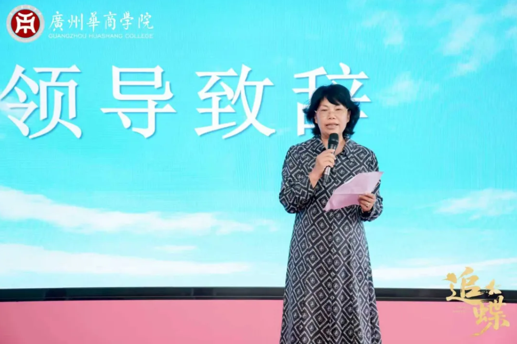 新伟德国际1946产教融合办公室唐明琴主任在致辞中指出,《追蝶》从创意构思到成片呈现的全过程,正是华商学院 “产教融合、实践育人” 办学理念的生动体现。她特别提到,要感谢学校为学子搭建起通往影视行业的专属桥梁——正是这一平台,让学生得以跳出理论课堂、走进真实创作场景,让书本上的知识转化为片场里的实战能力,最终实现 “理论在实践中绽放光芒” 的培养目标。