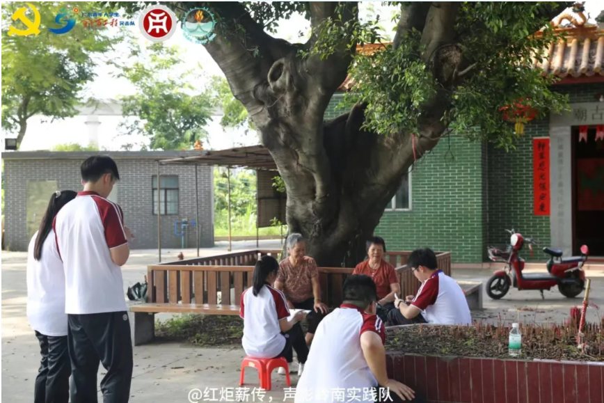 于探寻西南村包相古庙之幽径时,实践队A组有幸邂逅二位老妪。彼时,她们正悠然端坐于古庙门前那棵苍翠欲滴的榕树之下,面容慈善温婉,言辞间洋溢着无尽的热情与健谈。