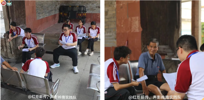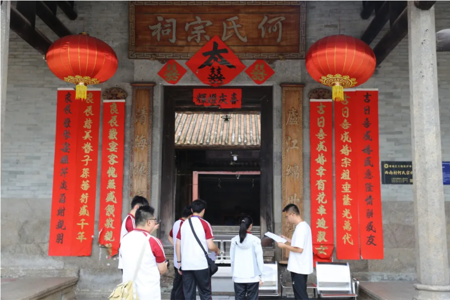 实践队B组则踏足了西南村内规模最为宏大的古迹——粤心何公祠。他们拜访了当地德高望重的长辈,通过与村民亲切交谈,深入了解了这座宗祠在岁月变迁中所扮演的角色,以及它如何连接着过去与现在的故事。