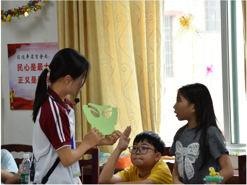 今日课堂,是红穗荔行梦之队践行“以美育培根铸魂”理念的生动注脚。历史文化竞猜寓教于乐,激活传统基因;青铜面具制作以手启心,解码文明密码。孩子们在纹饰描摹间感悟“天人合一”的哲思,在角色扮演中体察礼乐文明的庄严。 正如习近平总书记所强调:“美术教育是美育的重要组成部分,对塑造美好心灵具有重要作用。”大学生党员们以专业素养搭建文化桥梁,让三星堆的青铜辉光洒向乡野,让沉寂的汉字古韵焕发生机。当孩子们高举面具宣言“我是古蜀文明守护者”,当拼贴画中奔腾着神话的浪花——这既是美育浸润乡土的硕果,更是青春力量赋能乡村振兴的铿锵回响。