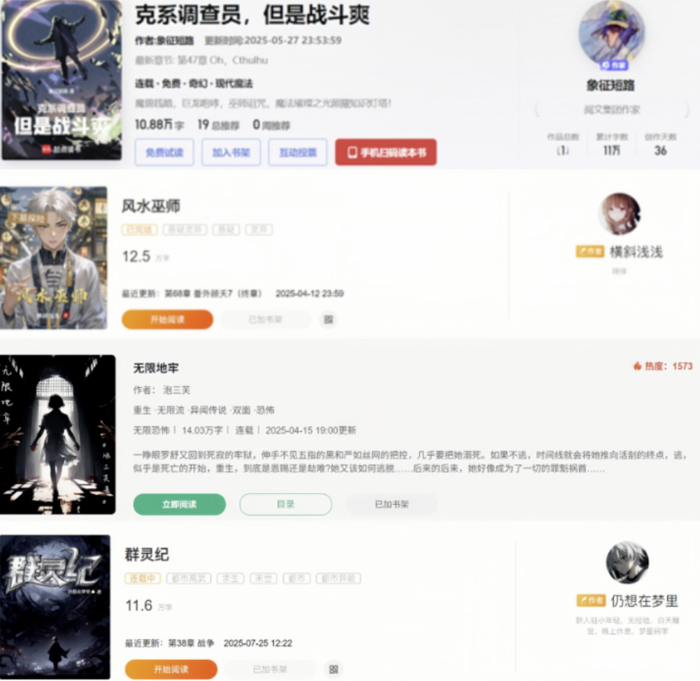 超级写作梦工坊的4位同学,凭借优秀的故事内容崭露头角,其作品在网文平台获得签约、持续连载。