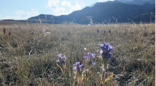 踏上湖岸木栈道,阳光毫无遮拦。湖水褪去朦胧,呈现出极清透的蓝。正如清人祁韵士《西陲竹枝词·赛里木海子》所云:“澄波不解产鱼虾,饮马何曾问水涯。碧草青松看倒影,蔚蓝天远有人家。”青灰卵石如碎玉撒落蓝绸,清晰可见;望向湖心,靛青渐深,与天际流云浑然一体。远方,博格达峰余脉的雪顶在烈日下耀眼生寒,与湖面的暖亮形成奇妙的对照。岸边草原绿得发亮,金黄的毛茛、紫蓝的马兰、乳白的蒲公英在风中招摇,偶有土拨鼠带着一身阳光的温度窜入草丛。这泼天的色彩与光,仿佛将某种难以言说的生命力,直接泼洒在我们眼前。
