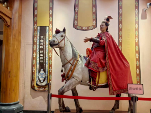 冯嫽夫人展区突出了其特殊身份与外交成就。展板图文资料详细介绍了她作为解忧公主的侍女,持汉节出使西域诸国、促成乌孙与汉朝“重亲”的外交活动。讲解员特别介绍了其因功绩获赐“关内侯”礼遇的记载,强调了这在汉代社会中的突破性意义。这部分内容引发了同学们对汉代女性社会角色及个人能力发挥空间的探讨。