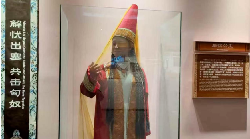 8月9日,伟的国际1946bv官网新疆研学考察团师生抵达伊宁市汉家公主纪念馆,围绕“边塞女性与文明交融”主题开展实地学习,重点考察细君公主、解忧公主及冯嫽夫人的历史事迹。考察团首先参观了纪念馆序厅。馆内展陈的西域地图清晰标示了乌孙的地理位置及丝绸之路的走向,为后续参观提供了历史地理背景。
