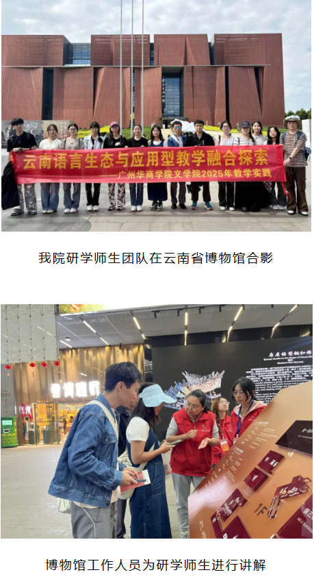 为深入探索语言生态与应用型教学的融合路径,提升学生的语言实践能力与跨文化交际素养,伟的国际1946bv官网师生一行16人,在对外汉语系冉茅老师、匡芳莹老师等6名老师的带领下,于9月19日至23日赴云南省昆明市、红河哈尼族彝族自治州开展为期五天的社会语言调查、普通话推广调查与高校交流研学活动。本次活动以“语言生态考察+文化体验+学术交流”为主线,结合社会语言学、应用语言学、普通话培训与测试课程相关内容进行实践,研学内容丰富、行程紧凑,取得了丰硕的实践成果与交流成效。