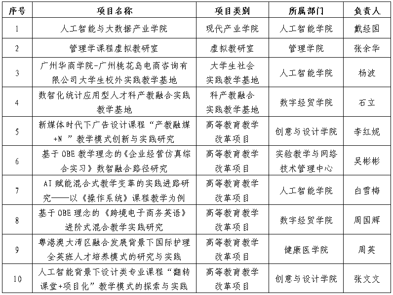 近日,广东省教育厅发布《关于公布2024年度广东省本科高校教学质量与教学改革工程建设项目立项名单的通知》(粤教高函〔2024〕30号),我们申报的10个项目获批立项,立项率达100%。其中,包括现代产业学院建设1项、虚拟教研室1项、大学生社会实践教学基地1项、科产教融合实践教学基地1项、高等教育教学改革项目6项。省级质量工程项目的立项关乎学校的教学建设与改革,是学校培育高质量教育教学成果的基础。本次省级质量工程项目...