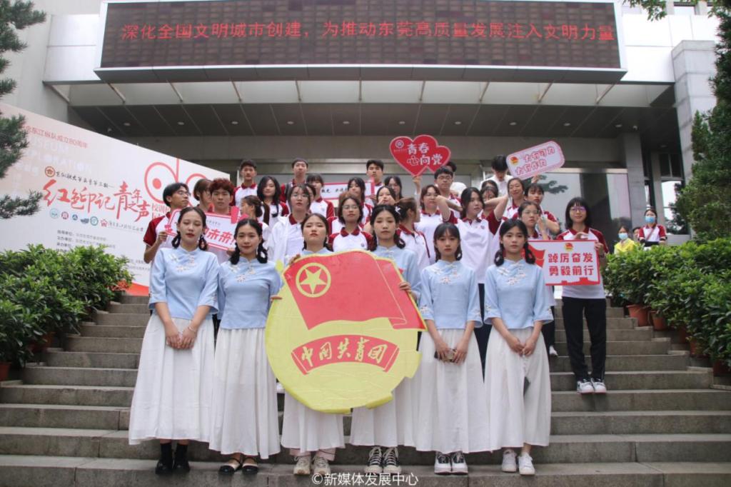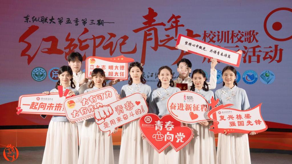 雅言传承精神,经典浸润思想。我们华商之声广播电视台学生代表参加“东纵联大”第五季第三期“红色印记 青年之声”校训校歌展示活动。同学们声情并茂,慷慨激昂,带来朗诵节目《星火青年》。“厚德、励志、博学、创新!奔涌吧,华商青年们。让青春在为人民,为民族,为祖国,为人类的不懈奋斗中绚丽绽放。”他们以朗诵传递华商校训,借表演诠释时代精神,展现华商青年向上精神风貌,张扬青春风采,表达传承革命薪火、把青春播撒在实现民族复兴的中国梦征程上的决心和行动。