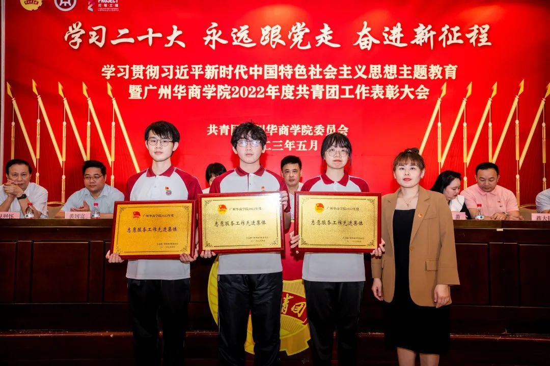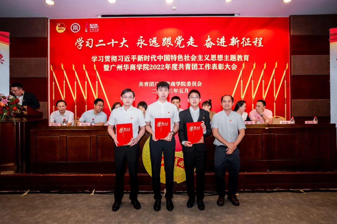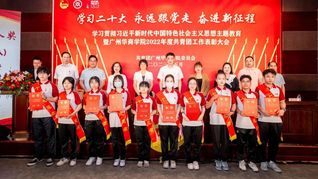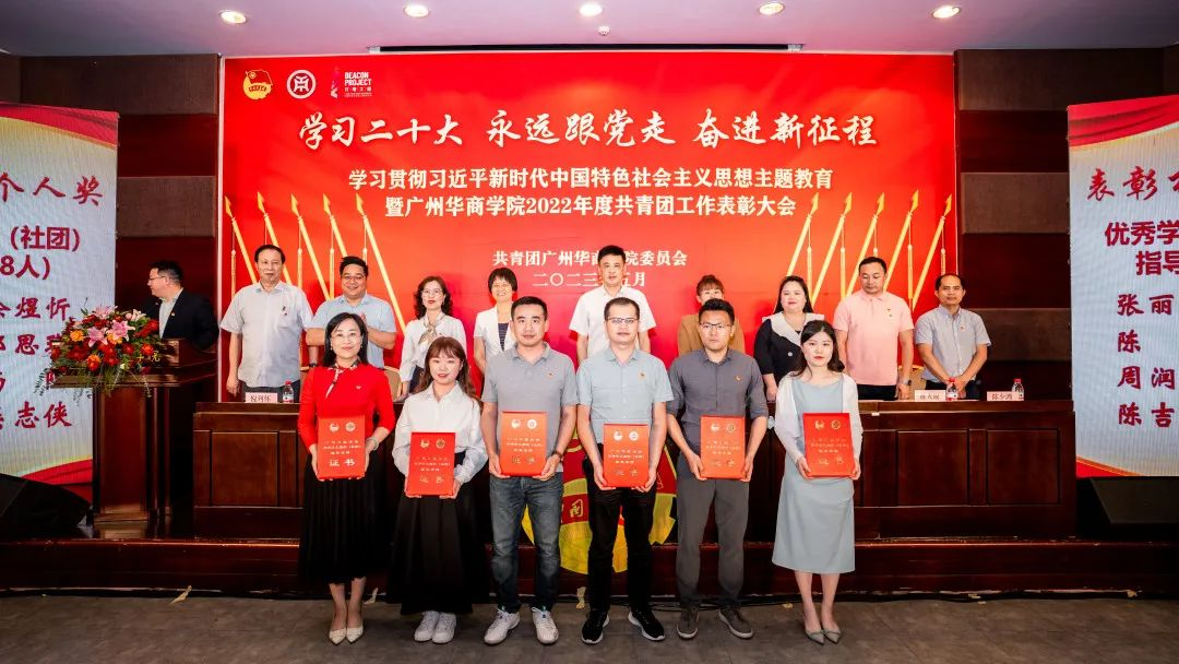 为深入学习贯彻党的二十大精神,全面领会习近平总书记关于青年工作的重要思想,引导广大华商青年厚植家国情怀、涵养进取品格,以习近平新时代中国特色社会主义思想凝心铸魂,用奋斗姿态激扬青春,不负时代、不负韶华,努力成长为有理想、敢担当、能吃苦、肯奋斗的新时代好青年。在学校党委领导下,校团委在国际会议中心4楼报告厅举行“学习二十大,永远跟党走,奋进新征程”学习贯彻习近平新时代中国特色社会主义思想主题教育暨新伟德国际19462022年度共青团工作表彰大会。本次表彰大会采取线上和线下相结合的方式,增城校区设主会场,四会校区设立分会场。大会由校团委陈刚书记主持。