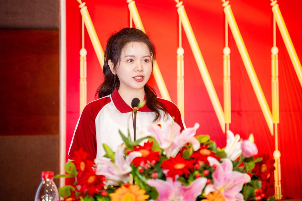 广东省优秀共青团员周婧同学作为获奖代表发言。五四青年节前夕,习近平总书记给中国农业大学科技小院的同学们回信,提出殷切期望,并向全国广大青年致以节日的祝贺。周婧同学表示,我们应该将习近平总书记的鼓励和希望转化为前进的动力,志存高远、脚踏实地,用实际行动践行青春使命,用智慧和汗水创造新的奇迹。她号召同学们:一要坚定信念,树立远大理想;二要脚踏实地,练就过硬本领;三要主动尽责,彰显青年担当。