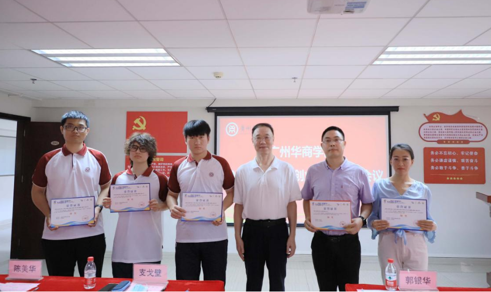 随后,会议对我们2022年度创新创业教育工作表现突出的先进单位、优秀个人进行表彰。数据科学学院、管理学院、会计学院、金融学院、创意与设计学院荣获先进单位称号,胡小瑜等22位老师被评为优秀个人,王汉章等17位老师受聘为创新创业导师。郭银华执行校长为先进单位和优秀个人代表颁发荣誉证书,支戈壁副校长为创新创业导师代表颁发聘书,王锦秀副校长和陈美华副校长分别为获得双创奖学金的学生代表和第八届中国国际“互联网+”大学生创新创业大赛省赛获奖的项目团队颁奖。