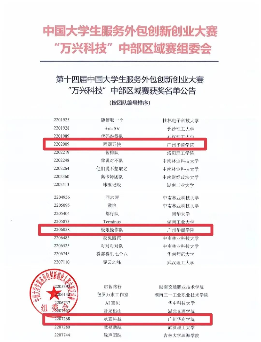 第十四届中国大学生服务外包创新创业大赛万兴科技中部区域赛决赛于5月28日在长沙中南大学落下帷幕。本次大赛中部区域共有1500余支团队报名参加,经初赛后,127支团队进入决赛答辩。我们“西湖五侠”“极限操作队”和“承宣科技”三支团队获区域赛二等奖。