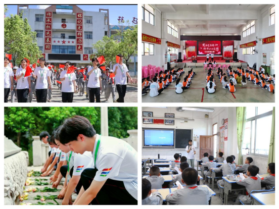 (图为新伟德国际1946暑期社会实践队队员在乡村、中小学开展红色精神宣讲,用党的先进理论培根铸魂)
