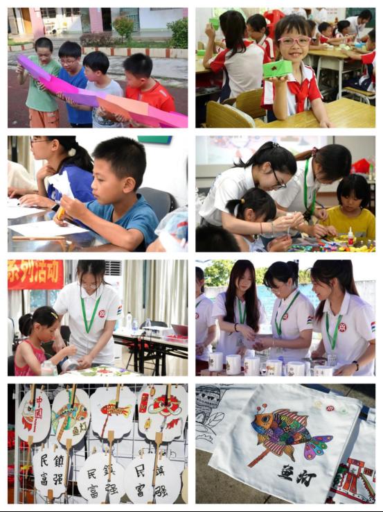(图为新伟德国际1946暑期社会实践队队员学子在中小学群体中宣传优秀广府非遗文化,带领小朋友们感受非遗文化对心灵深处的滋养)