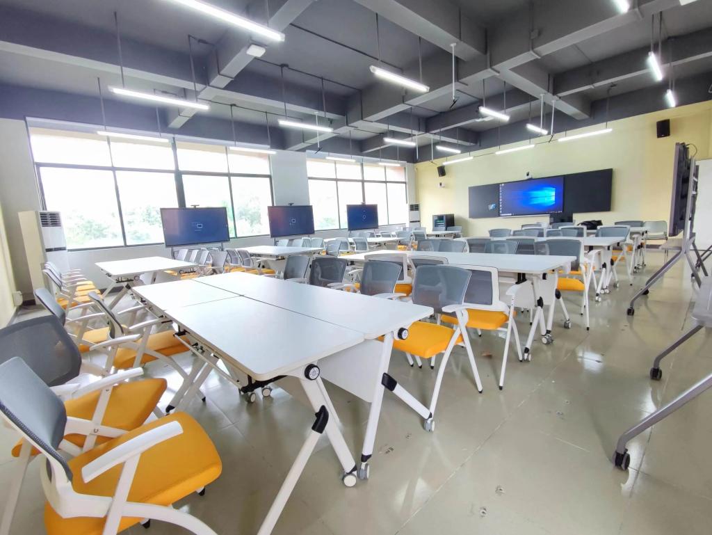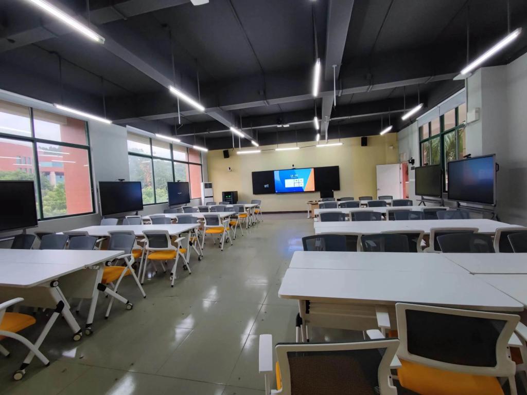 在设备升级与教室改造方面,学校对早期建设的31间实验室老旧设备和部分教学系统进行了更新,从而保障了教学质量。其次,对同声传译实验室进行升级改造,更换木地板与损坏家具。其次,为推动学校课堂教学模式改革,助力我们硕士点建设与一流课程建设,学校在励志楼另建设了10间智慧教室,建成后可实现教学多屏互动、能效管理、数据自动采集等功能,为师生提供积极有效的教学实验环境,能有效激发学生积极探索、积极互动、消除师生“上下级”界限感,从而真正提升课堂教学质量。