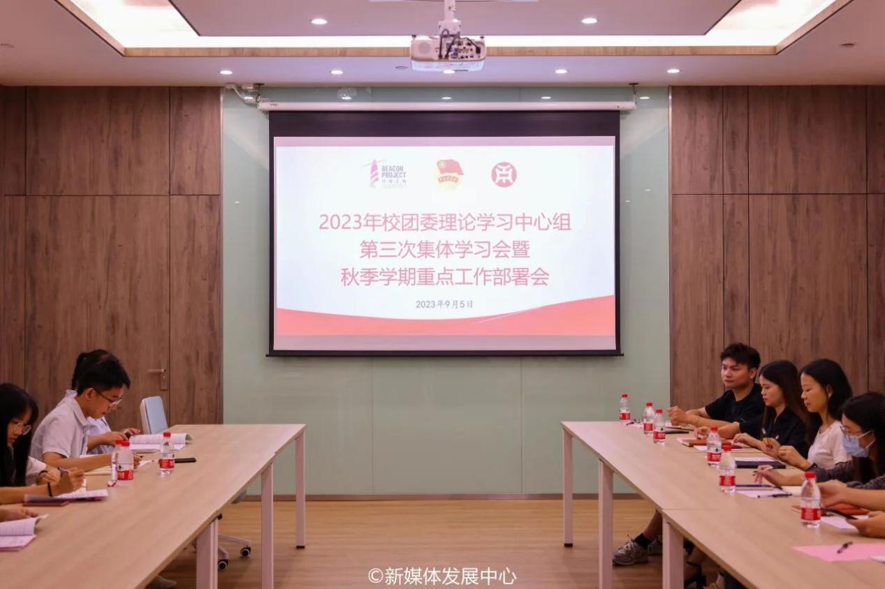 为深入学习贯彻党的二十大精神,全面落实团十九大工作部署,深入推进学校共青团改革,统筹谋划2023年共青团工作,明确新学期学院共青团工作重点,9月5日上午10:00,学校团委在教师发展中心互动室5召开2023年校团委理论学习中心组第三次集体学习会暨秋季学期重点工作部署会。会议由团委书记陈刚主持,校团委常委、国际学院团委书记杨李军,校团委全体成员、各二级学院团委书记、学生会指导老师参加会议。