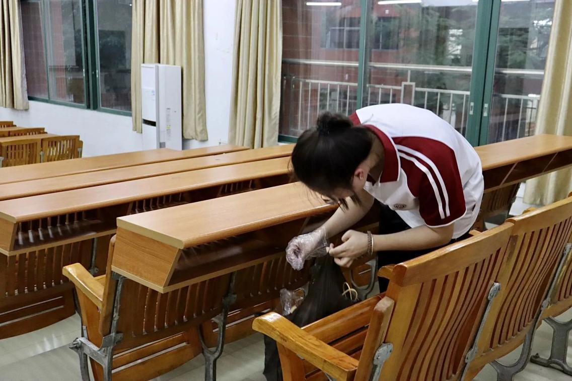 ——2023年下半年中小学教师资格考试(笔试)考场清扫志愿活动。9月15日17:45,组织180名志愿者清理教资笔试考场。志愿者们自带清洁用具,认真进行垃圾清扫、物品整理等,为考生提供卫生、干净的考试环境。