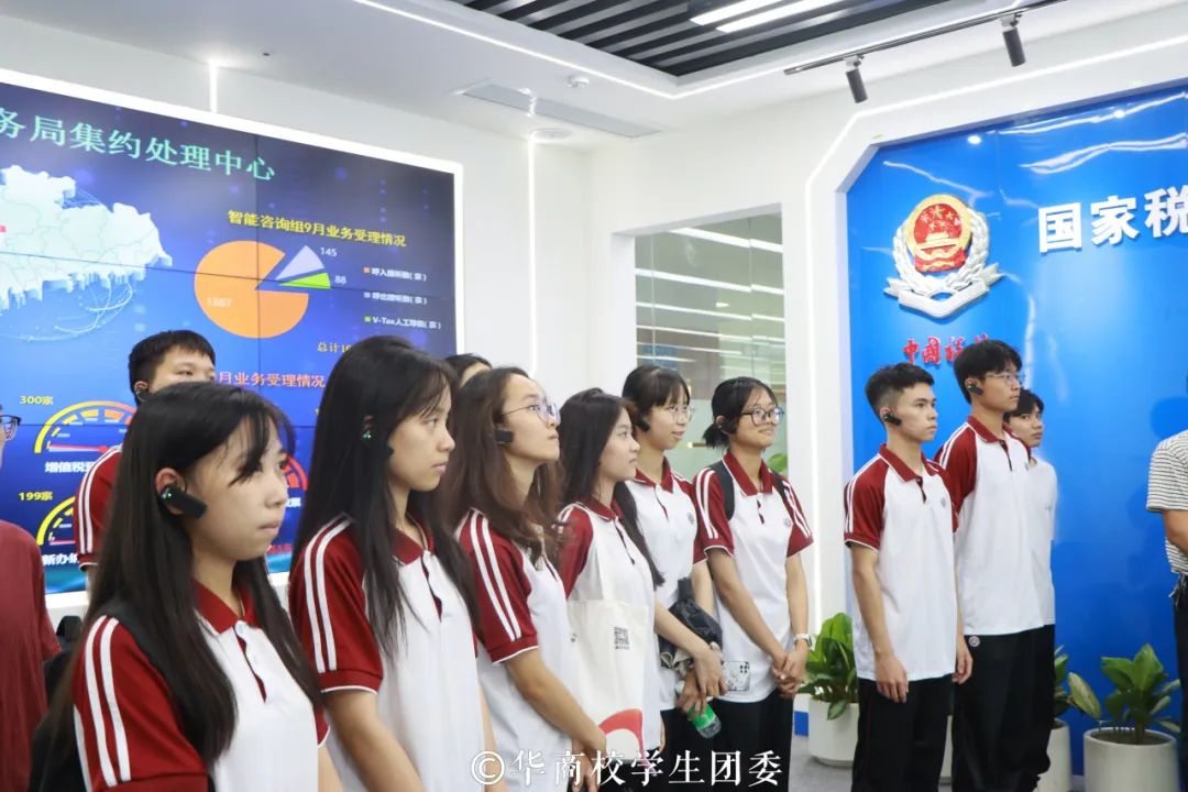 ——税务体验环节。在税务体验环节,学生代表们来到四会市税务局智慧办税服务厅,在税务人员介绍下,详细了解智慧办税服务厅功能区设置,以及“非接触式”税费服务新举措,现场观摩“发票代开”“证明打印”等税务业务办理流程,通过V-TAX远程可视化办税沉浸式地体验税务部门智能化办税服务。
