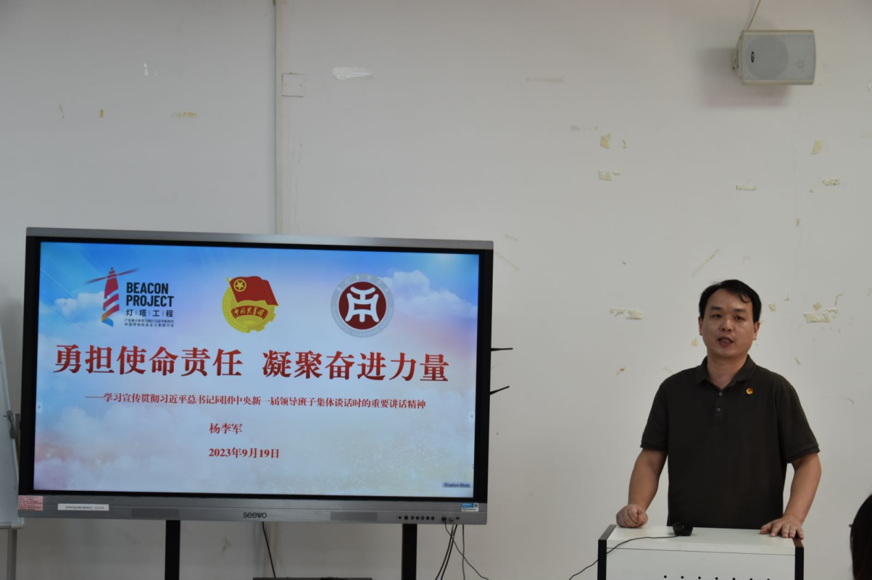 9月19日,国际学院团委在启智楼405教室开展“勇担使命责任,凝聚奋进力量”主题团课,本次团课由国际学院团委书记杨李军老师主讲。旨在激发青年学生的担当精神,为实现中华民族伟大复兴贡献力量。此次团课活动主要围绕学习贯彻习近平总书记同团中央新一届领导班子成员集体谈话时发表的重要讲话精神。通过讲解、分析、现场问答等形式,引导青年团员深入思考如何在实际工作中践行使命,如何更好地发挥个人优势,如何为团队贡献力量。杨书记用生动的语言、具体的案例和实践经验,阐述了使命责任的重要性。同时,结合国际学院实际情况和未来发展方向,强调了团队协作、创新创业、担当精神等方面的关键作用。他还鼓励青年团员要勇于担当责任,积极探索创新,不断提升自身素质和能力。