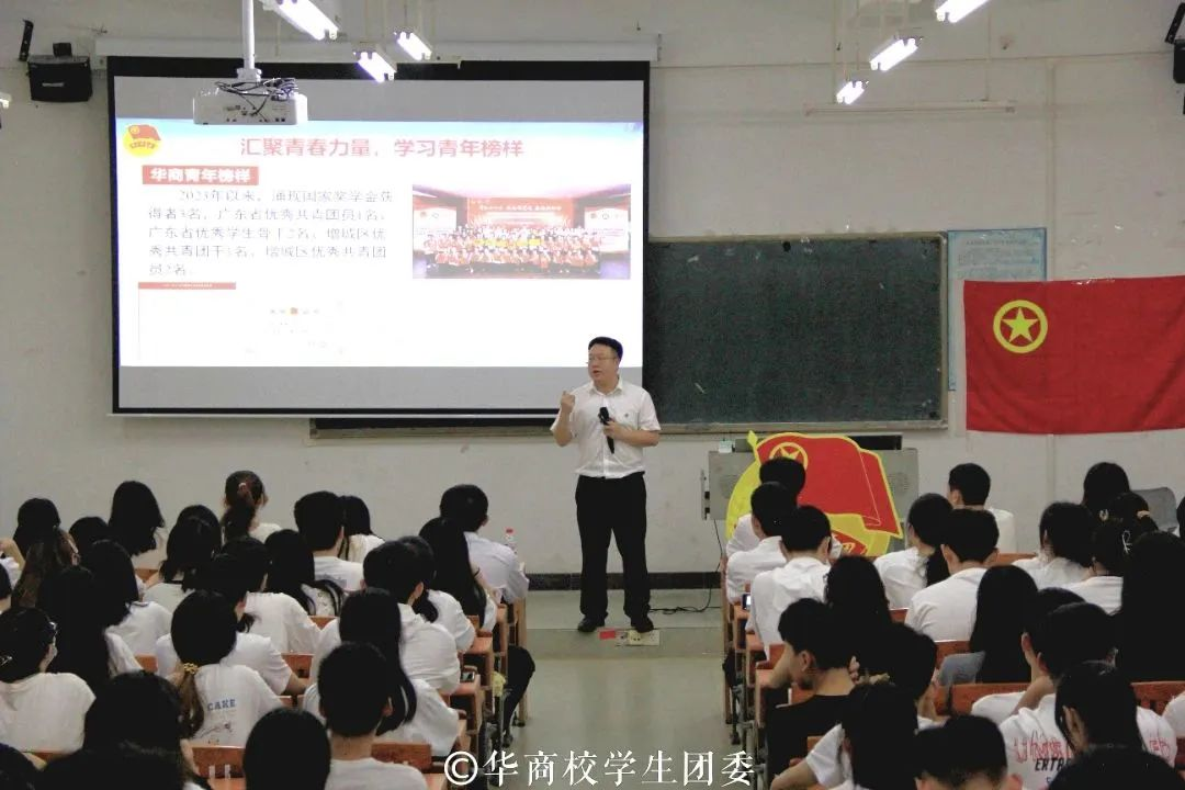 本次培训,校团委陈刚书记系统地介绍团旗、团徽和团歌的详细信息与使用场合,提醒团支书们要合理且规范地使用团旗、团徽和团歌。同时,他围绕“激发华商共青团‘三力一度’新动能,培养有理想、敢担当、能吃苦奋斗的新时代好青年”的主题,分为突出理想信念教育,着力提升共青团的引领力;强化团学组织体系,着力提升共青团的组织力;深化实践育人,着力提升共青团的服务力;融入粤港澳大湾区建设,着力提升共青团的贡献度这四个模块进行授课。