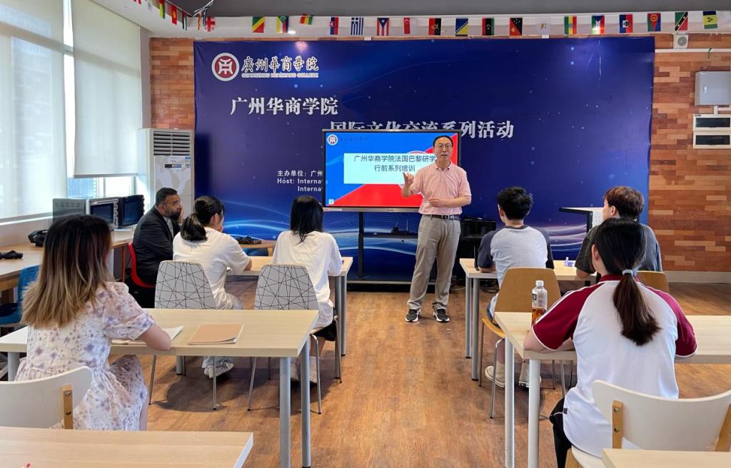 5月7日,我们在广州校区举办了优秀学生赴法国巴黎研学行前培训系列课程开班仪式。国际交流与合作处处长王文忠、外国语学院外教Tahir Shaikh、法语教师齐爱萍、国际交流与合作处吴文诗老师参加本次培训活动。