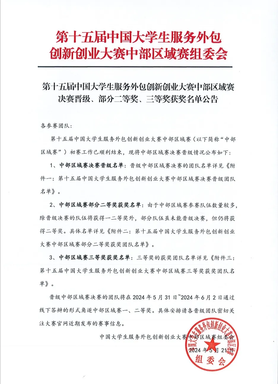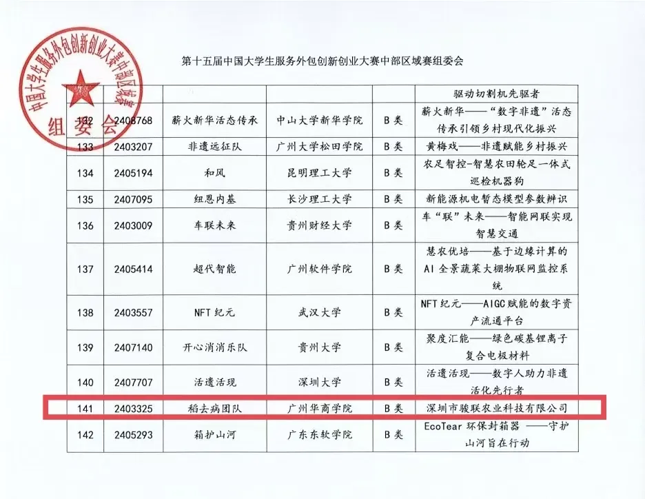 近日,第十五届中国大学生服务外包创新创业大赛中部区域赛组委会公布比赛成绩。我们“稻去病团队”在第十五届中国大学生服务外包创新创业大赛中部区域赛中斩获佳绩,获中部区域赛三等奖。