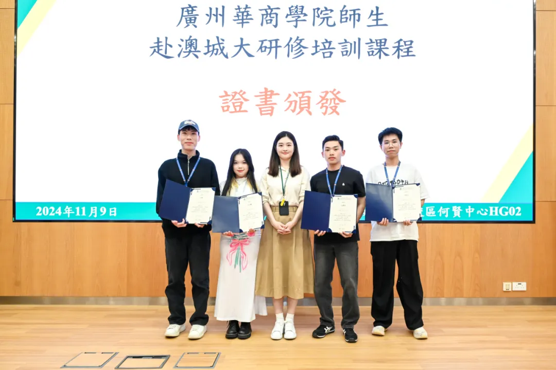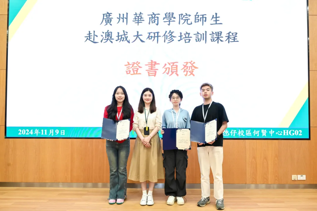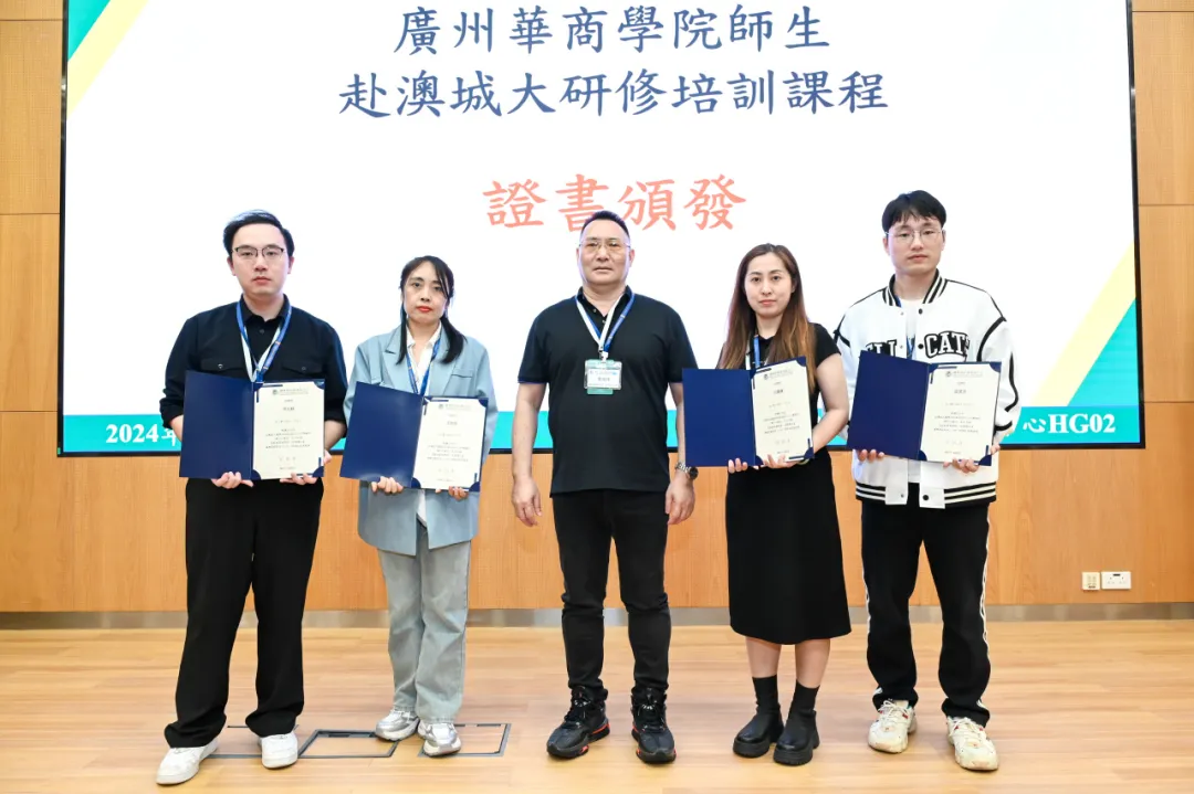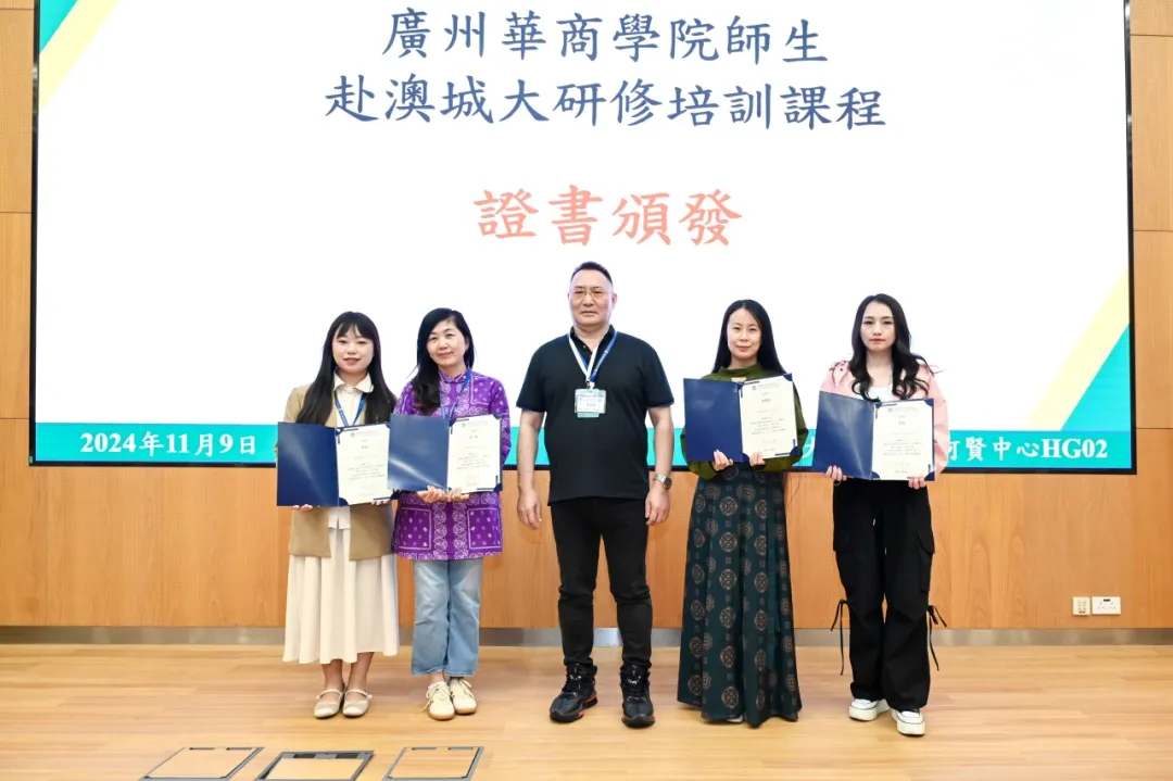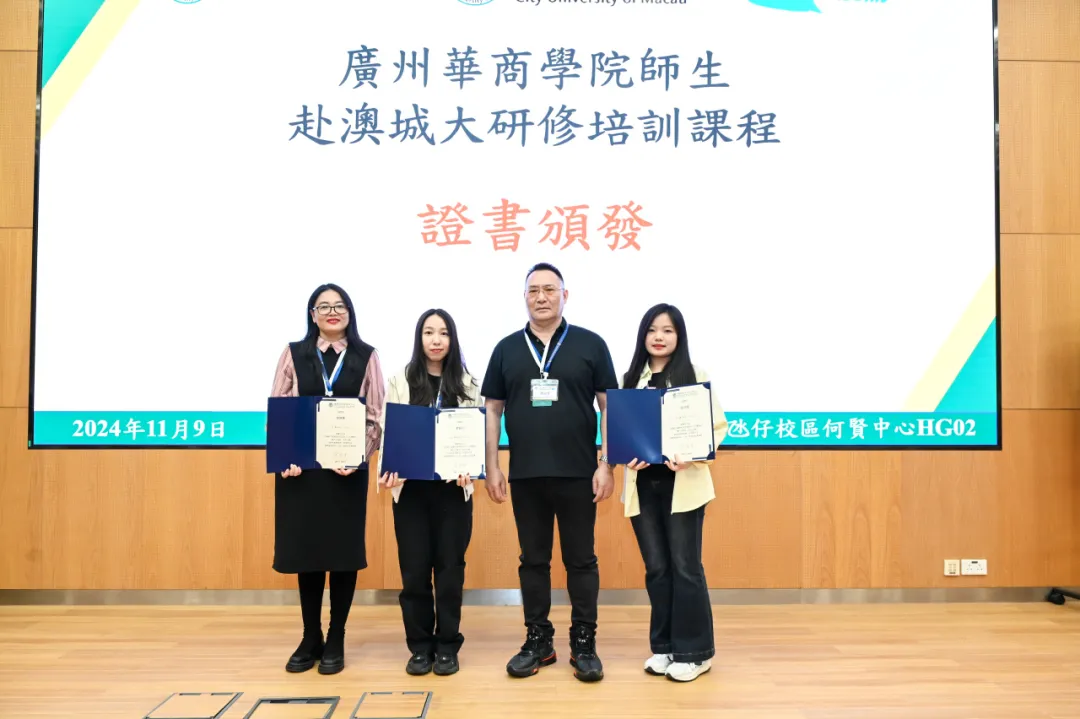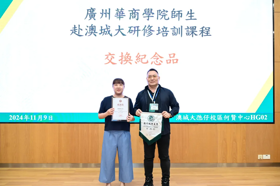 讲座结束后,澳门城市大学国际培训与测试中心为研学团队师生颁发课程结业证书,我们与澳门城市大学国际培训与测试中心交换纪念品。