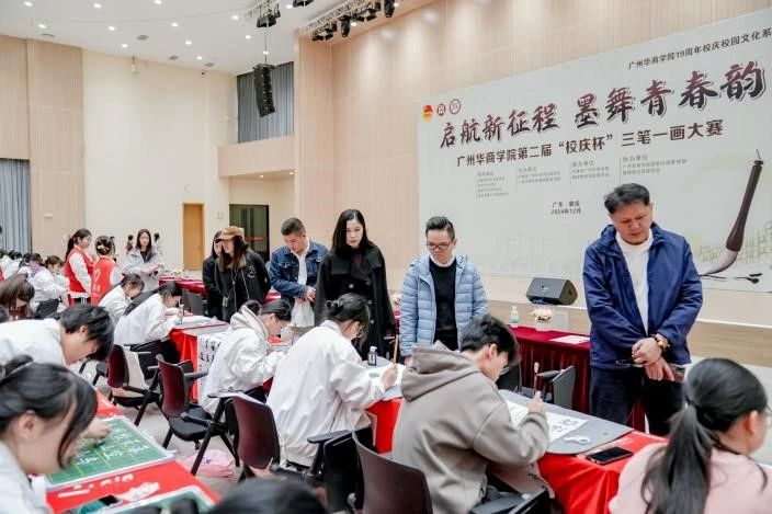 为深入学习贯彻习近平新时代中国特色社会主义思想,积极响应习近平总书记关于青年工作的重要思想,传承中华优秀传统文化,培养学生的综合素质与艺术修养,丰富学生校园文化体验,献礼学校19周年校庆。在学校党委领导,共青团四会市委员会、四会市文化馆、四会市书法家协会、四会市青年书画家协会指导下,12月13日下午,学校团委联合教师教育学院在肇庆校区二号楼2楼报告厅举办新伟德国际1946“启航新征程、墨舞青春韵”第二届“校庆杯”三笔一画大赛。