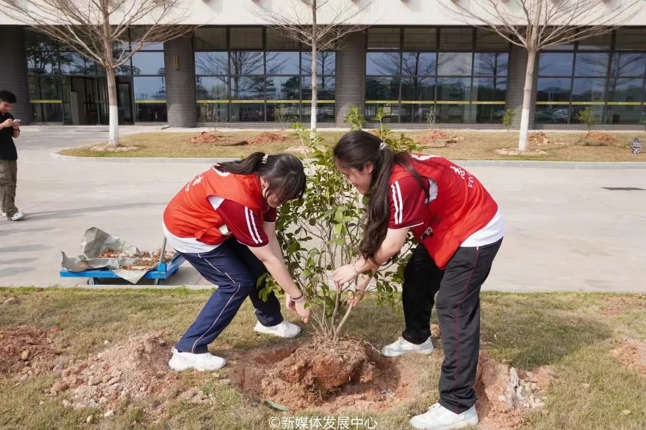 为引领华商青年在实践中践行绿色发展理念,助力绿美广东生态建设,3月11日-12日,新伟德国际19462025年“绿美广东 青年先行”植树护绿活动在双校区开展。学校党委书记陈玉欢,校长助理黄伟新、张军,党委委员、党委办公室主任吕书勉,肇庆校区党委书记苏宁,国际学院院长回雁雁,创意与设计学院院长杨磊,管理学院副院长袁仕海,体育学院党总支副书记莫军,肇庆校区后勤保卫办公室主任徐强,党群部门负责人、校院两级团学骨干、教师代表及学生志愿者近400人参加本次活动。