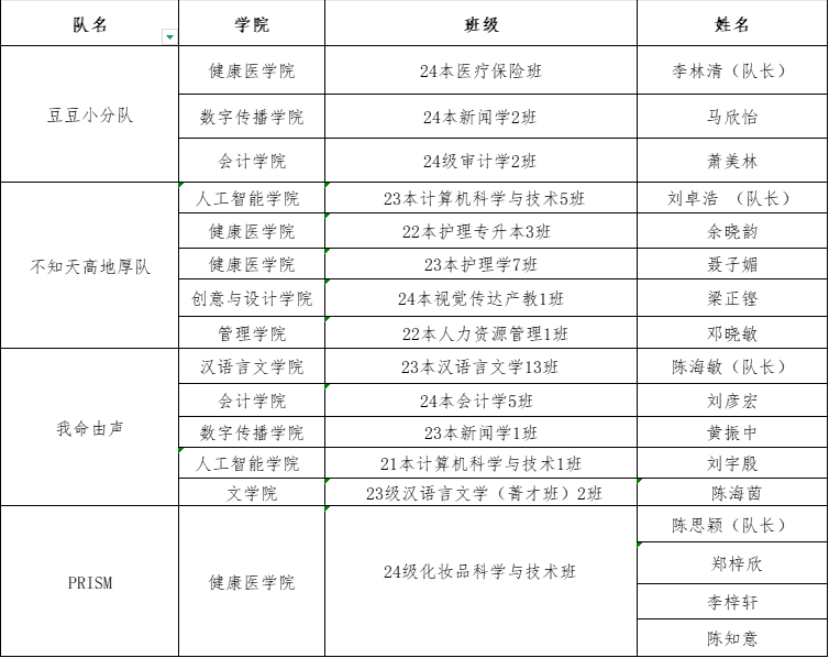 数字传播学院林钥蕾(队长);会计学院李浩然