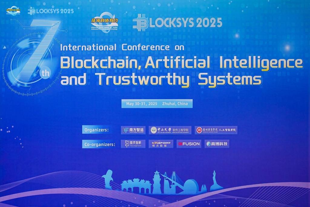 2025年5月30日至31日,由南方智运、中山大学软件学院与我们人工智能学院联合主办的第七届区块链、人工智能与可信系统国际会议(BlockSys’2025)在中国珠海顺利举办。本次大会聚焦区块链、人工智能与可信系统三大前沿领域,汇聚了来自全球顶尖高校、研究机构及行业领军企业的专家学者,共同探讨关键技术的最新研究成果与未来发展趋势。