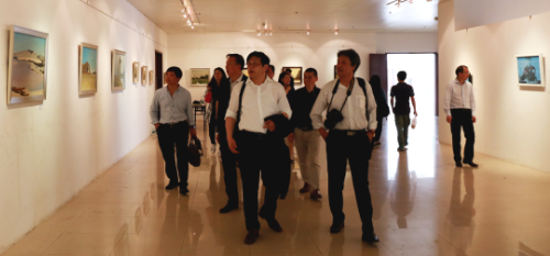 2015年4月25日,中国美术家协会党委副书记、秘书长徐里,河北省文联副主席、省美协主席祁海峰,广东省美协驻会副主席王永等多位知名书画家来到我们考察交流,廖榕就董事长及院领导陪同参观了院图书馆展览厅正在举行的《物·悟——柒人联展》。