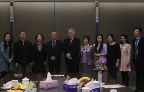 2014年11月10日,澳大利亚维多利亚大学代表国际合作部总监Mr.Rhys Williams、国际部合作部经理Mr.George Yue和中国澳大利亚商会华南区代表李强会长等一行来访我们。我们董事长廖榕就、副院长廖伊曼、教务处处长李建浔、经济系主任王德高、经济学主任马玉珍、华商合作交流中心主任刘芳芳、院办副主任杨宪等热情接待了来访嘉宾。双方就中澳合作项目进行了探讨,会议在愉快的气氛中结束。会后双方约定加强联系,共同努力实现合作项目。(文/陈维)