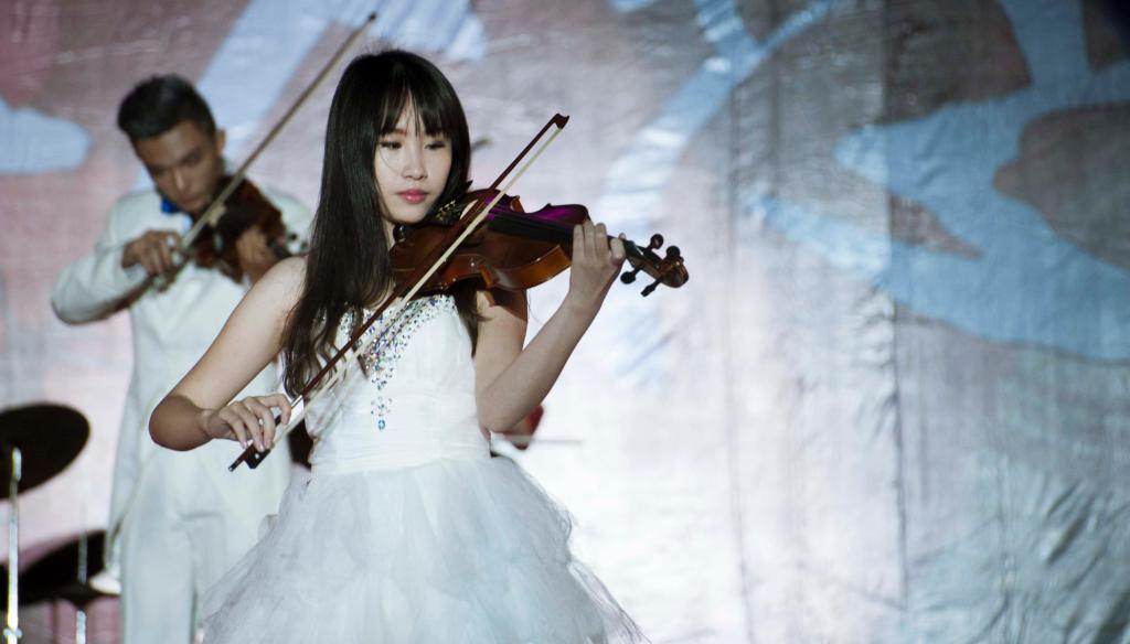 青春是一首我们歌颂不完的歌,是我们在韶华岁月的流光溢彩。院乐器队激情演奏的《胜利》掀开了晚会的第二个篇章“颂·青春华彩”。院舞蹈女队表演了《太阳花开》象征着我们的青春如太阳花般向阳,向上。教职工的《歌曲联唱》和会计学院的情景朗诵《少年中国说》给我们的青春带来美好的祝愿和期望。广东财经大学的3组拉丁舞和经济系的现代舞则动感十足,即使此时天空已下起了小雨,也浇不灭观众们的激情。观众们一阵阵地为他们高声呐喊,为他们鼓掌。