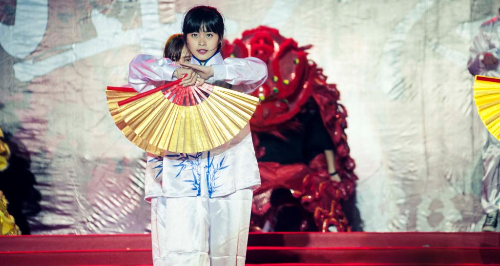 十年华诞千秋业,万缕春晖一代人。灯光四射,为华商学院披上一件金碧辉煌的彩霞。伴着雄浑有气势的乐章,功夫扇与南拳的组合表演拉开了本次晚会的帷幕。他们动若飞龙,缓若游云,既稳健又潇洒,引得台下观众一阵阵欢声雷动。