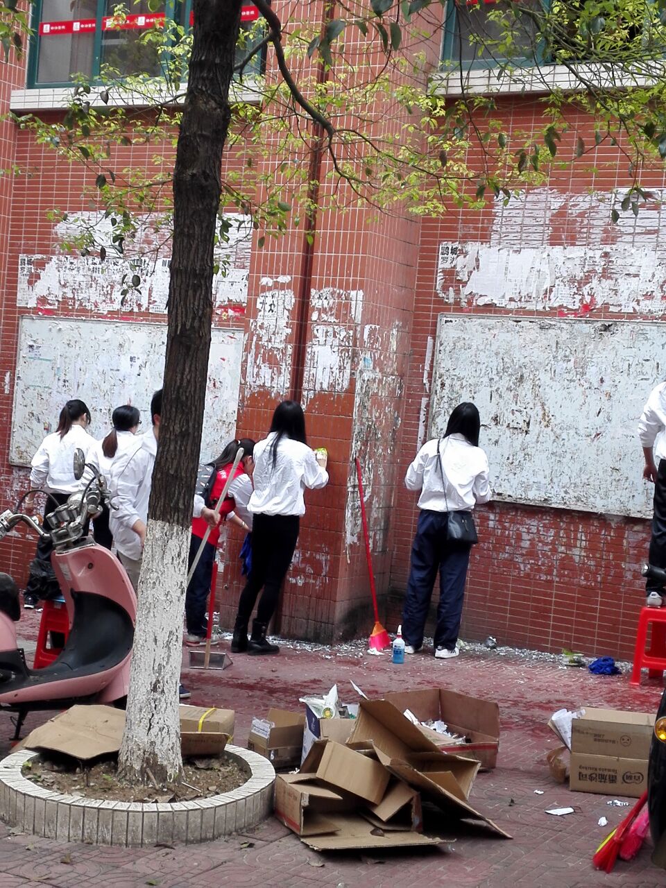 通过志愿者们两个多小时齐心协力的工作,校园面貌焕然一新,到处透出洁净和清爽的气息。而志愿者们辛勤劳作的身影,也成为这阳春三月里一道道靓丽的风景线。