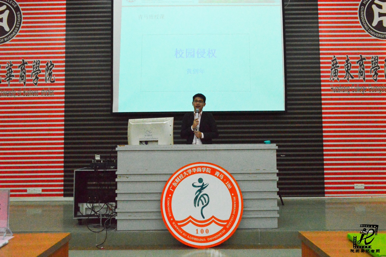 3月31日晚,华商学院2015—2016学年团校学习班于励志楼C408顺利开展。学院团委黄剑年老师以《校园侵权案例分析--大学生如何维护身边的合法权益》 为主题,为青马班学员授课。向学员们讲述了侵权与维权的法律知识,培养学员们的社会主义法律思维和法律信仰,提升大学生法律应用能力。