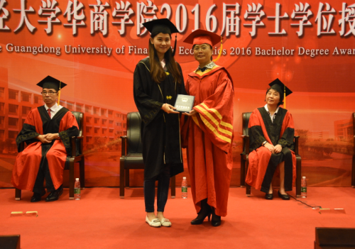 6月24日上午,我们2016届学士学位授予仪式分别在图书馆报告厅、国际会议中心报告厅和启智楼一楼三个会场举行。董事长廖榕就,广东财经大学副校长于海峰、王廷惠,华商学院院长陈玉川,副院长王列耀分别为600名毕业生代表颁发学位证书。