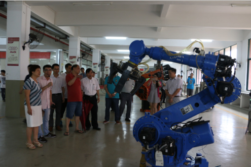 杨丽娟副院长、张武华副院长一起陪同来宾们乘车参观了华商的校园环境和校园建设。在参观途中,学院办公室给来宾们详细介绍华商教学行政区、生活后勤区等各功能区的总体情况,以及各学院的基本情况,招生专业,办学特色和内涵建设。最后,来宾们分别参观了华商学院投入逾千万元高标准建成的校内经管学科跨专业综合仿真实习、云计算、云桌面等平台,以及华商职院物流实训、电力系统自动化、工业机器人等实训中心。