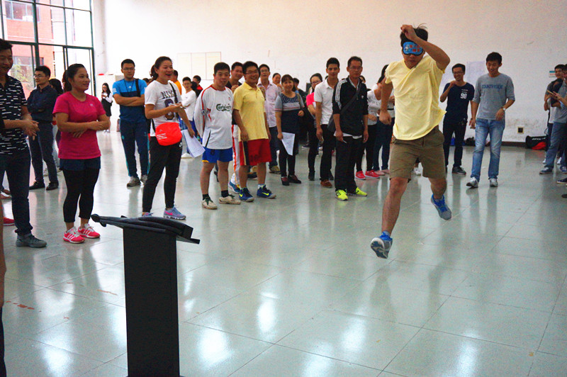 10月18日下午三点, 2016年教职工趣味运动会在励志楼健美操教室和羽毛球馆两个场地顺利举行。本次教师趣味运动会设置了“夹球跑”、“单人跳绳接力”、“盲人敲锣”以及“足球障碍”四个比赛项目,教职工踊跃参加,达300人次。