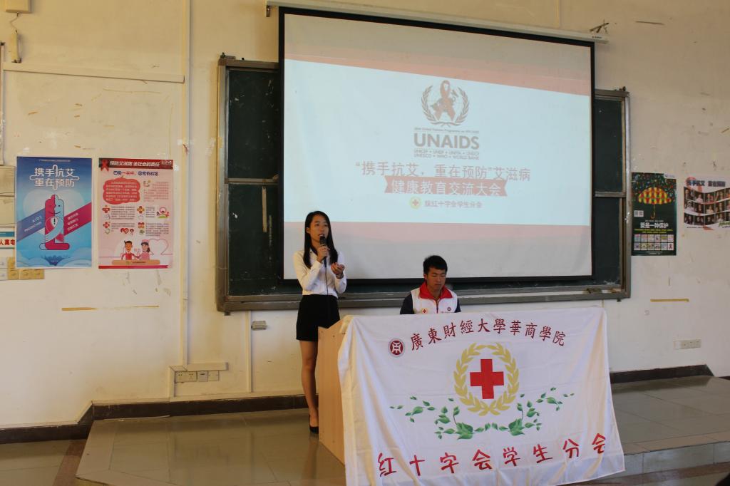 在2016年12月1日第29个“世界艾滋病宣传日”来临之际,由共青团广东财经大学华商学院委员会主办、院红十字会学生分会承办的 “携手抗艾,重在预防”艾滋病健康教育交流大会在励志楼C308教室正式举行。