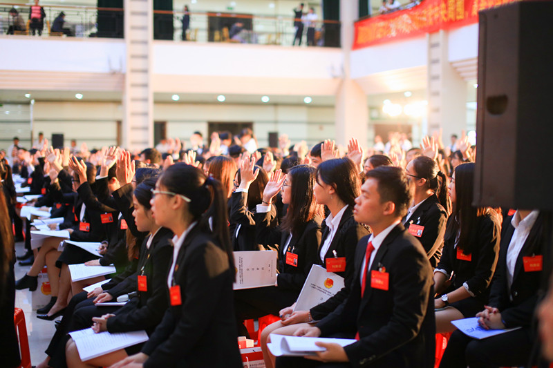 在深入学习贯彻党的十八届六中全会精神的背景下,为了更好地团结和带领全校团员青年、学生为学院的建设和发展贡献青春力量。我们于2016年12月9日晚至10日,隆重召开了共青团广东财经大学华商学院第二次代表大会、广东财经大学华商学院第二次学生代表大会(简称“双代会”)。