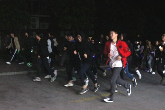 参加荧光夜跑的同学们,在跑到终点时,不仅体验到夜跑的乐趣,同时还欣赏到精彩的灯幕表演,同学们身体力行地支持地球环保公益活动。