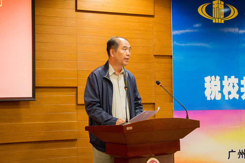 马玉珍教授首先上台致辞。她回顾了2016年三局在我们建立税收宣传教育基地、合办首届华商学院税收知识大赛、华商学生到增城国税实习等税校合作的历程,介绍了华商学生2016年考公务员进入税务系统的情况,充分肯定了校税协同教育平台的重要作用。同时强调了税收宣传活动是让社会公民了解和掌握税收知识的重要形式,是学校教育的重要补充。能让在校学生牢固树立纳税意识,知道生活和工作要有底线,学财会要遵纪守法,做合格公民。三局在华商设立税务普法教育基地和干部教育培训基地,必将使得校税协同育人平台开启了新的篇章,助航学生成就蓝色的梦想。