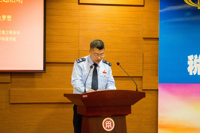 最后,增城区国税局征收管理科李超军、税政科钟文彩、增城区地税局税政科朱春华和广州市国税局东区稽查局案件审理科刘建明分别给华商师生普及了国地税便民办税措施、国家最新减税政策、地方税收简介和“黑名单”制度与联合惩戒等知识,给华商师生上了生动而实用的一课。