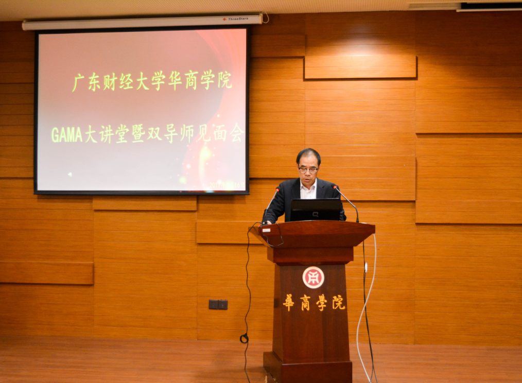 4月16日上午,广东财经大学华商学院GAMA大讲堂暨“双导师”见面会在图书馆报告厅隆重举行。2016级GAMA班实践导师陈福彬、付细军、高符生、葛芸、康淑敏、刘乐仁、王平、肖斌和学术导师蔡祥、胡玉明、林斌、刘善敏、漆江娜、王华、文芳、张程睿、刘中华等17位导师以及广东省管理会计师协会秘书处梁芳菲女士出席了本次活动。同时出席的还有华商学院副院长郭银华教授、马玉珍教授。活动由马玉珍教授主持。