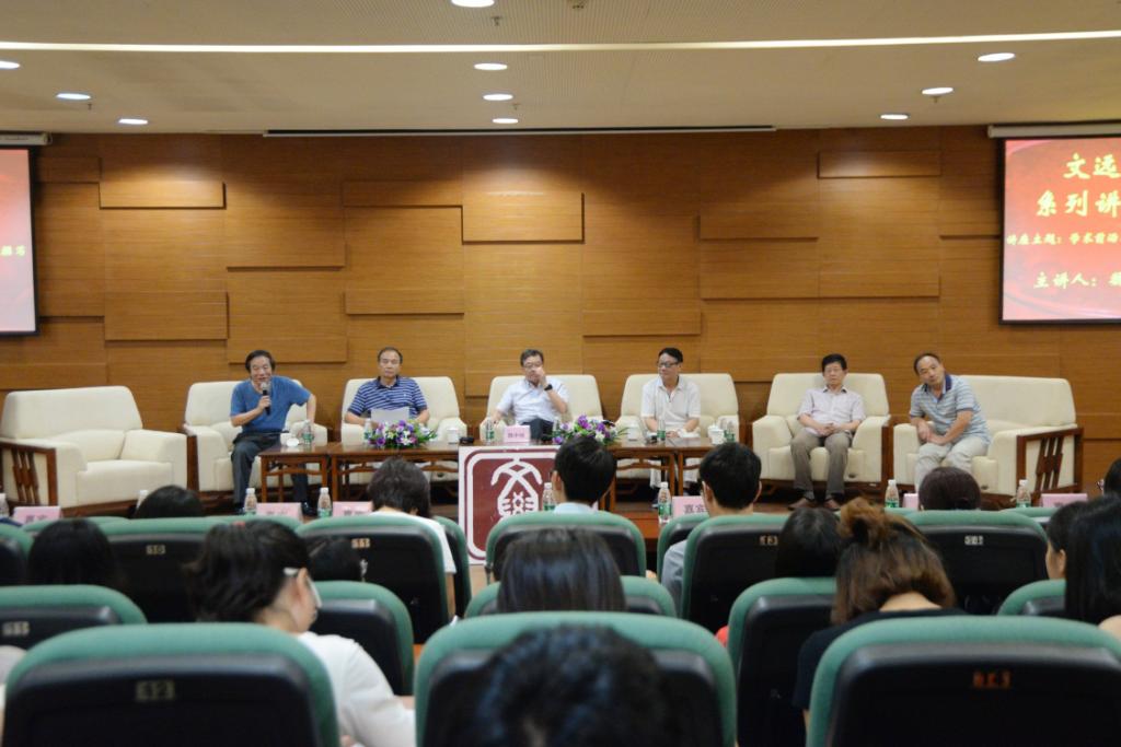 6月20日,文远大讲坛第四期之“学术前沿与学位论文选题及撰写”在广东财经大学华商学院图书馆一楼报告厅举行。此次讲座主讲人是魏中林教授——暨南大学中国古代文学专业博士研究生导师,师从中国著名学者钱仲联先生,曾荣获暨南大学首届十佳授课教师称号等。出席本次讲座的嘉宾有学院副院长、伟的国际1946bv官网院长王列耀教授,伟的国际1946bv官网副院长尹康庄教授,伟的国际1946bv官网文学系主任赵维江教授,文学系蒋家国教授和汪继东教授。本次讲座采用座谈会的新形式,由赵维江教授主持。